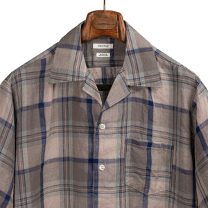 "A stunning check that boasts even more to appreciate in hand. The wash applied to the hi-twist linen results in this crepe-like finish, with a pleasantly crisp hand that wears soft on skin. The colors are neutral, easy wearing combinations with a brilliance in person, adding yet another juxtaposition in features that I'm using to describe this shirt. It feels like a lot of rambling for an open collar shirt, and I DO NOT get paid by the word, it's just a really good shirt."---Ludwin