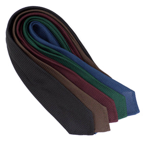 Grenadine ties are staple neckwear in a man's closet. Versatile and rakish, they add a rich texture against any shirting. This unlined, seven-fold version adds sophisticated construction as well as softness and lightness only seen on handmade ties.