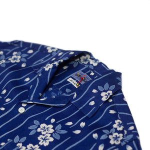 Inspired by by beautiful "hana-ikada" or flower rafts of the cherry blossom season, this perfectly summery lyocell camp shirt has a striking bassen relief print showing the flowers gracefully flowing down a river.