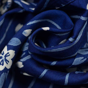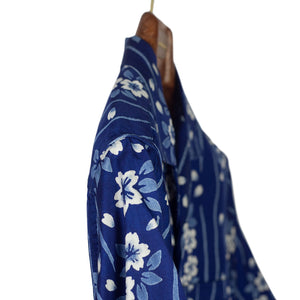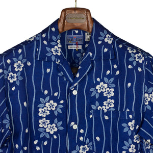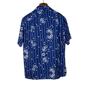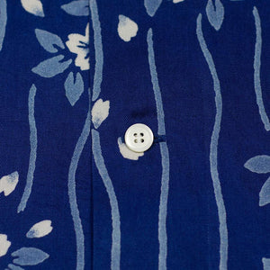 Short sleeve indigo camp shirt in "flower raft" bassen relief print lyocell