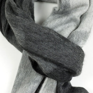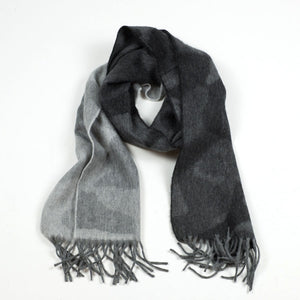 Begg's Jura mix of lambswool & angora offers a beautiful soft hand and this scarf's subtle camo design is both classic and modern