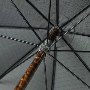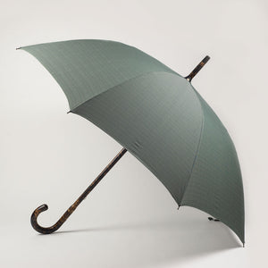 Solid stick umbrella, tiger hickory wood, vert-de-gris Prince-of-Wales canopy