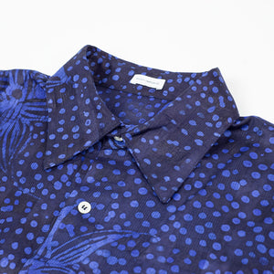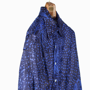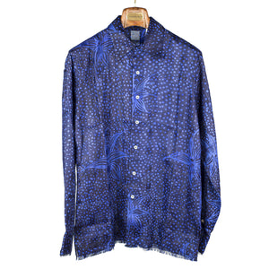 "Standard" cotton voile shirt in indigo and azure blue Galactic print