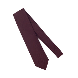 A seasonal riff on the classic solid grenadine tie, with a yarn mix and weave pattern that add volume and warmth. Highly recommended with a striped or checked shirt
