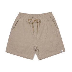 "We love our terrycloth polos and tees here at NoMan - a true staple for the summer months. So when we came across Thing Fabrics' work, the connection was strong. Superlative fabrics, great color shades and an execution that is second to none, which shouldn't be surprising for a company at the heart of the premium toweling capital of Japan: Imabari. These shorts are just so much more fabricated than what one expects from a terrycloth short: great pockets and finishing, two back pockets, and a lovely tan color drawstring to finish things off."---Greg