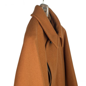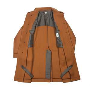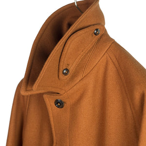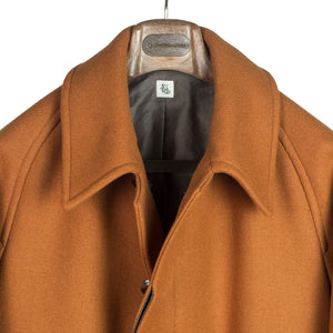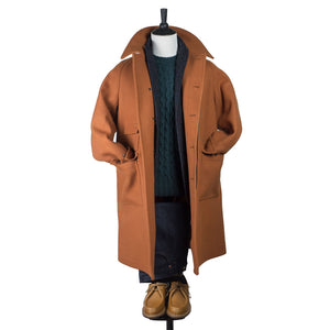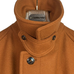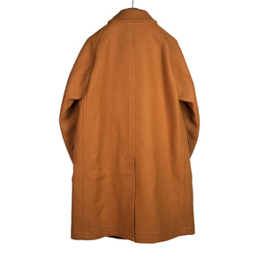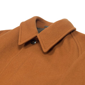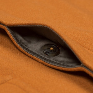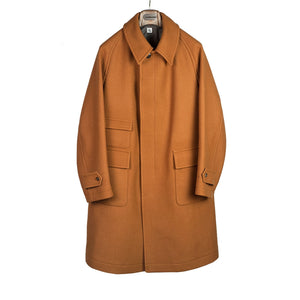 The traveler coat returns, bringing along its generous silhouette and distinctive details, like that ticket pocket. This seasons signature "walnut" burnt orange lends itseld particularly well to this shape.