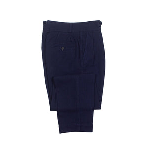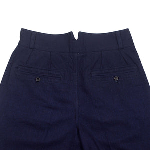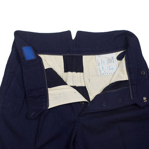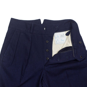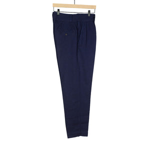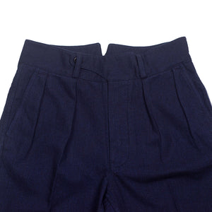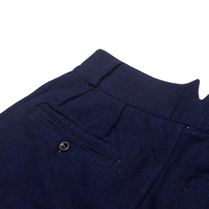 "Tuck" pleated trousers in indigo-dyed wool/cotton