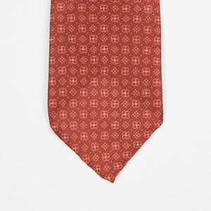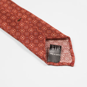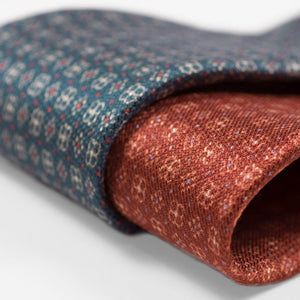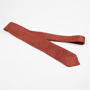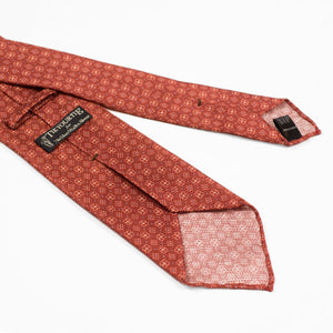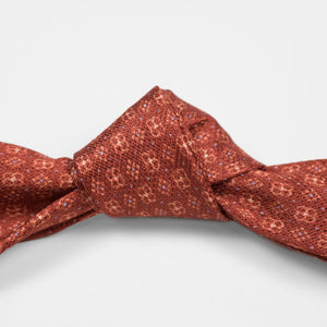 Untipped rust silk & linen hopsack tie, white & light blue neat print