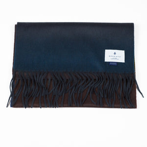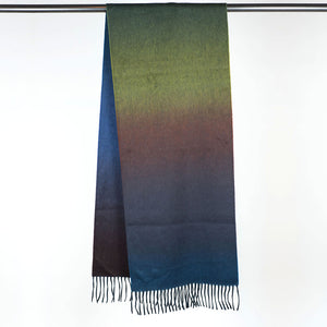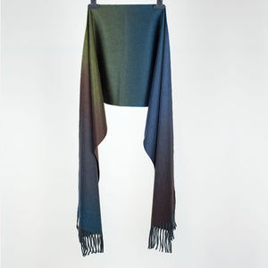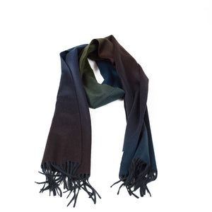 True winter indulgence with this 100% cashmere scarf made by the very best in the world. With rich colors gradually shifting from burgundy to blue and green, this piece of art reminds us of the colors of an oil painting. The feel of the cashmere is rich and soft.
