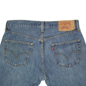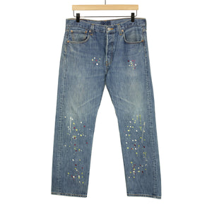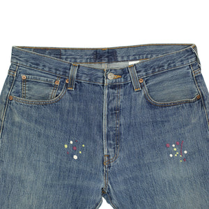 Vintage Levis 501 jeans with embroidered paint splatter, medium wash