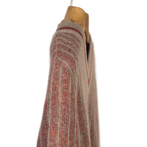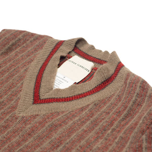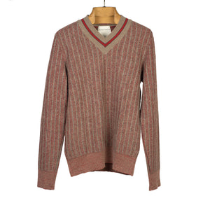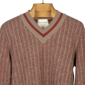 "Walkway" striped cricket sweater in red and taupe alpaca and wool