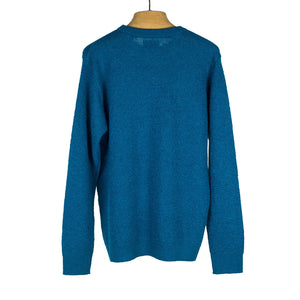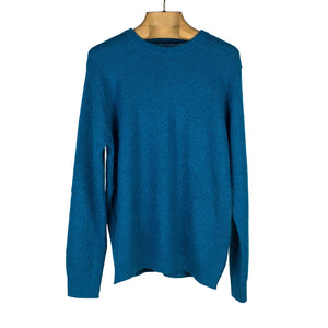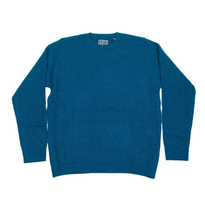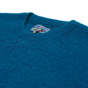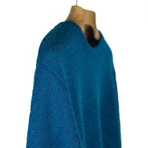 Woodgrain knitting pattern crewneck sweater in turqoise mohair blend