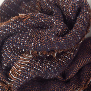 Wool, silk, linen & cashmere scarf in rust & blue melange