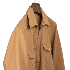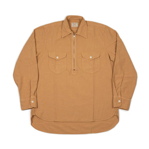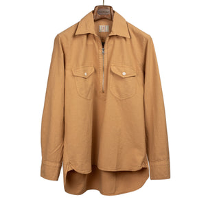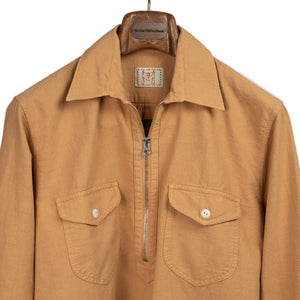 Half zip shirt in apricot garment dyed Japanese Aertex cotton