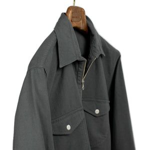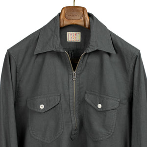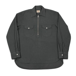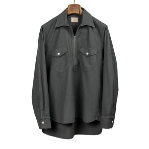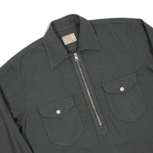 Half zip shirt in faded black garment dyed Japanese Aertex cotton
