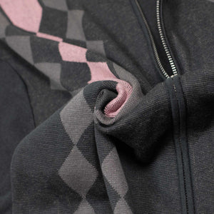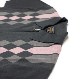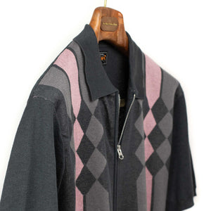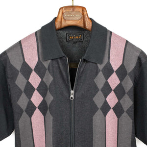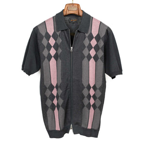 Zip knit polo in retro pink and black jacquard ramie and cotton